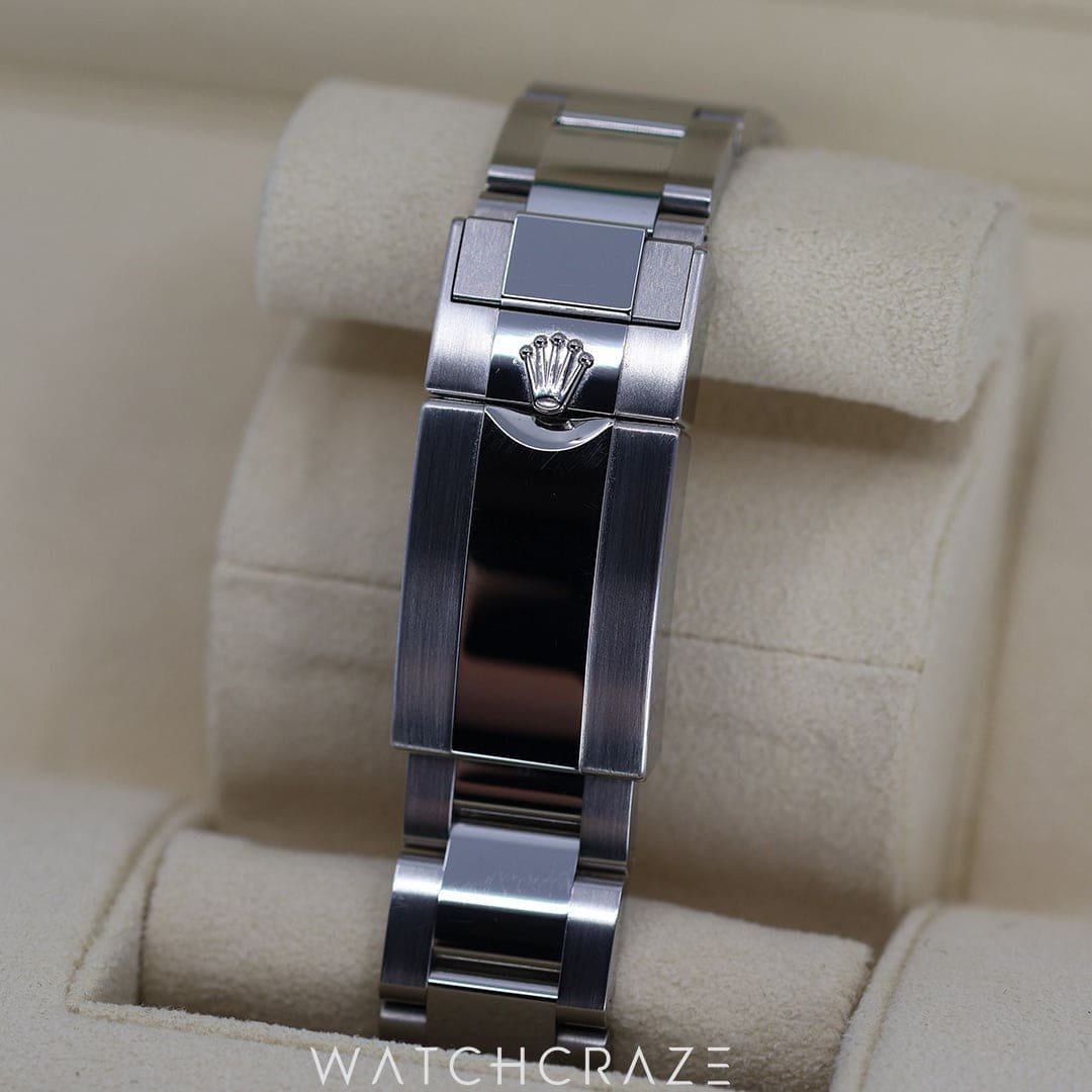 Protected by scratch-resistant sapphire crystal, the dial features hour markers and hands coated in luminescent material for optimal readability in all conditions. The watch is water-resistant to 100 meters, making it suitable for swimming and snorkeling. It comes with a comfortable and stylish Oyster bracelet, made from Oystersteel and equipped with an Oysterlock safety clasp to prevent accidental opening.